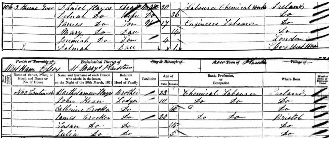 Their living conditions would have been awful 12 people crammed into what was very likely a small terraced house that was unlikely to have had running water. At the time the nearby Thames was a stinking open sewer and with horse drawn transport crowding the streets the roads in and around London would have been awash with horse poo and urine. The combination of that alongside the foul-smelling chemical works would have been almost intolerable. It is no wonder that there were frequent outbreaks of typhoid and cholera.